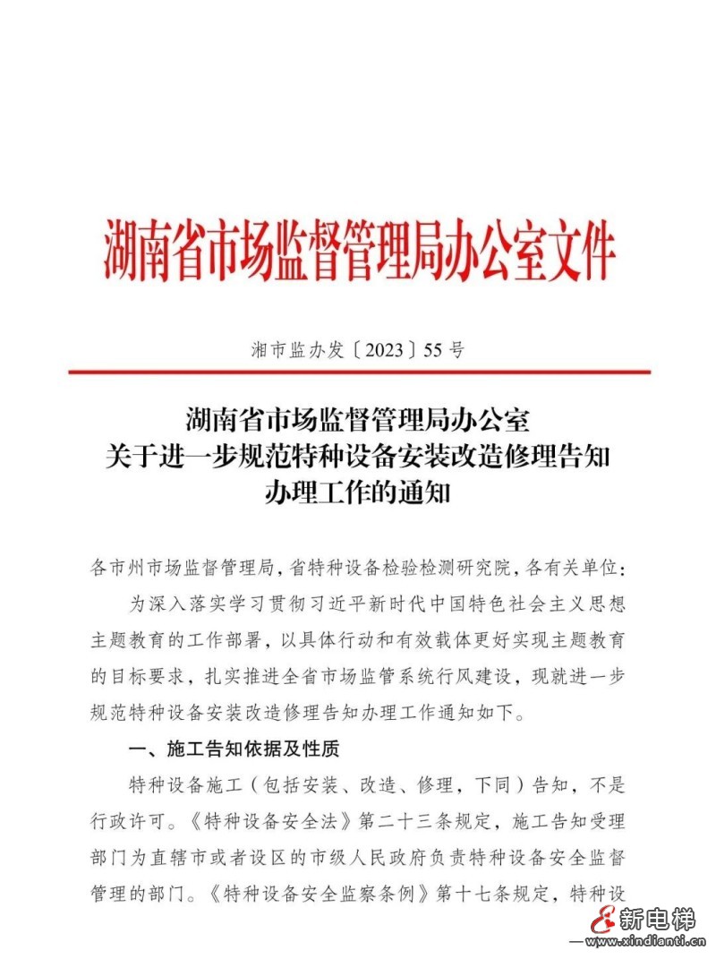 湖南省市場(chǎng)監(jiān)督管理局辦公室關(guān)于進(jìn)一步規(guī)范特種設(shè)備安裝改造修理告知辦理工作的通知