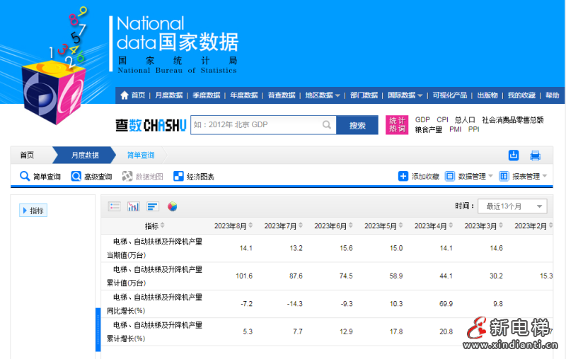 根據(jù)國家統(tǒng)計局公布的最新數(shù)據(jù),2023年8月全國電梯、自動扶梯及升降機產(chǎn)量為14.1萬臺,月度產(chǎn)量統(tǒng)計如下。