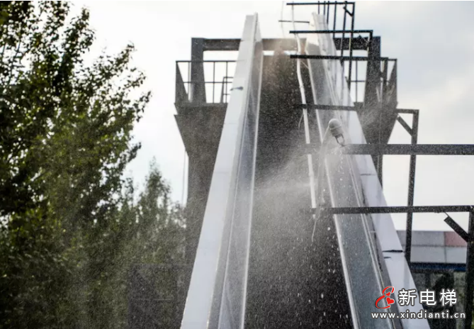 極限挑戰(zhàn),室外扶梯進(jìn)行數(shù)小時噴淋實驗
