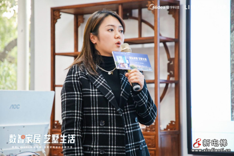 在活動活動伊始,作為主辦方代表,美的樓宇科技市場推廣經(jīng)理湯小君先生帶來《智享體驗·悅享生活》主題分享,與到場設(shè)計師分享美的LINVOL品牌的發(fā)展歷程與品牌故事。LINVOL數(shù)智電梯是美的集團(tuán)樓宇科技事業(yè)部旗下專業(yè)的數(shù)智電梯品牌,目前已擁有技術(shù)專利300+項,參與國家、行業(yè)電梯標(biāo)準(zhǔn)法規(guī)制定20余項,致力于成為全球最安全、舒適、智能的樓宇全生命周期交通解決方案提供商。湯小君提到,美的別墅梯與市場上其他品牌別墅梯的優(yōu)勢在于更智能、更安全、更舒適、空間更大、更美觀。