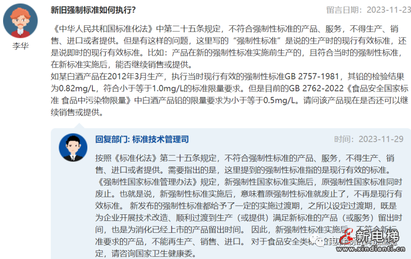 新舊強(qiáng)制標(biāo)準(zhǔn)如何執(zhí)行?留言日期:2023-11-23