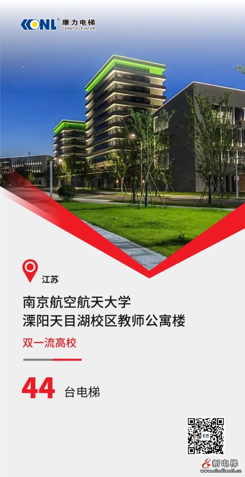 雙一流高校南京航空航天大學(xué),康力電梯為溧陽天目湖校區(qū)教師公寓樓提供44臺電梯