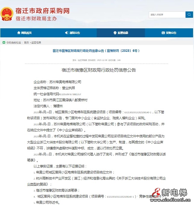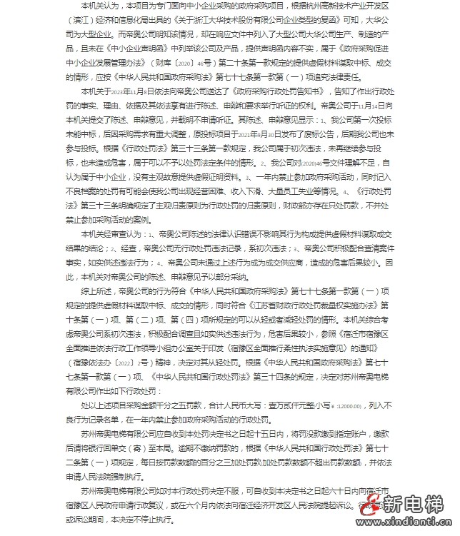 提供虛假材料,蘇州帝奧電梯被禁止一年內(nèi)參加政府采購活動!