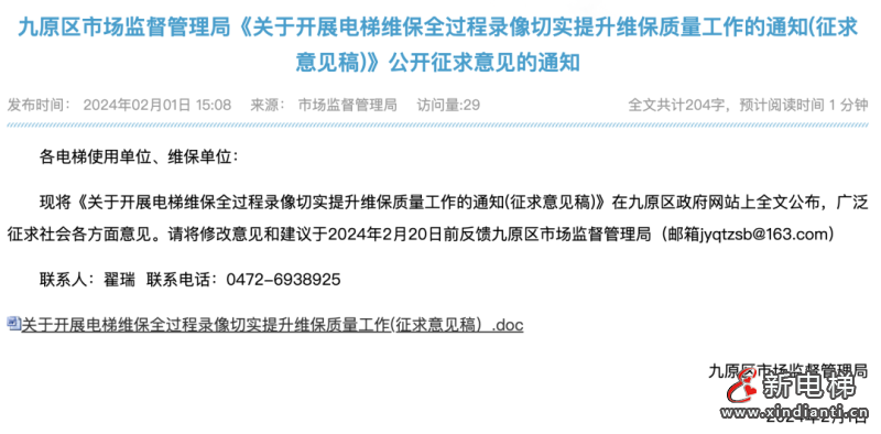 關(guān)于開展電梯維保全過程錄像切實(shí)提升維保質(zhì)量工作的通知(征求意見稿)