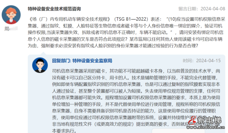 當(dāng)前位置:首頁>電梯資訊 >電梯新聞News>總局這條留言答復(fù)超詳細(xì)!事關(guān)這一機(jī)電類檢驗(yàn)大規(guī)范TSG!