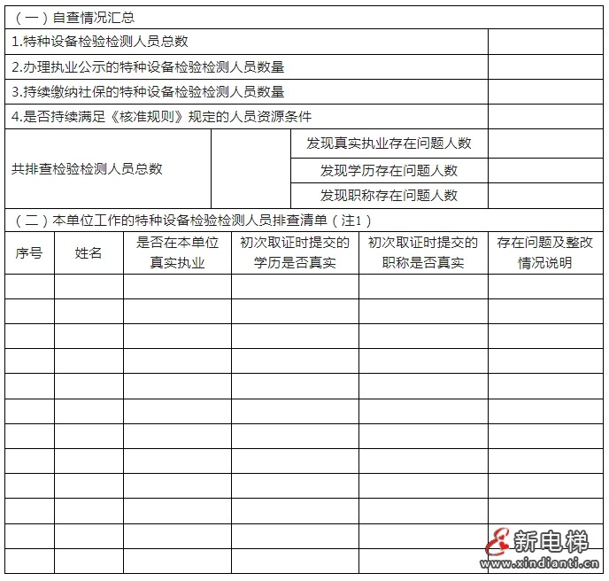 特種設(shè)備檢驗檢測機(jī)構(gòu)自查情況統(tǒng)計表