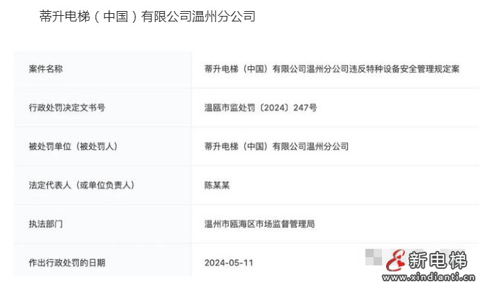 蒂升電梯(中國(guó))有限公司溫州分公司