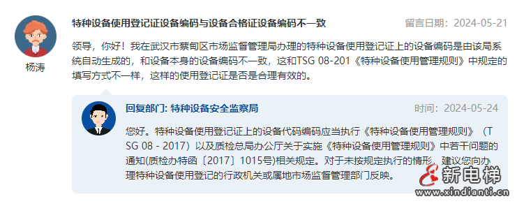 關(guān)于特種設(shè)備使用登記的編碼和時間等問題,總局答復(fù)