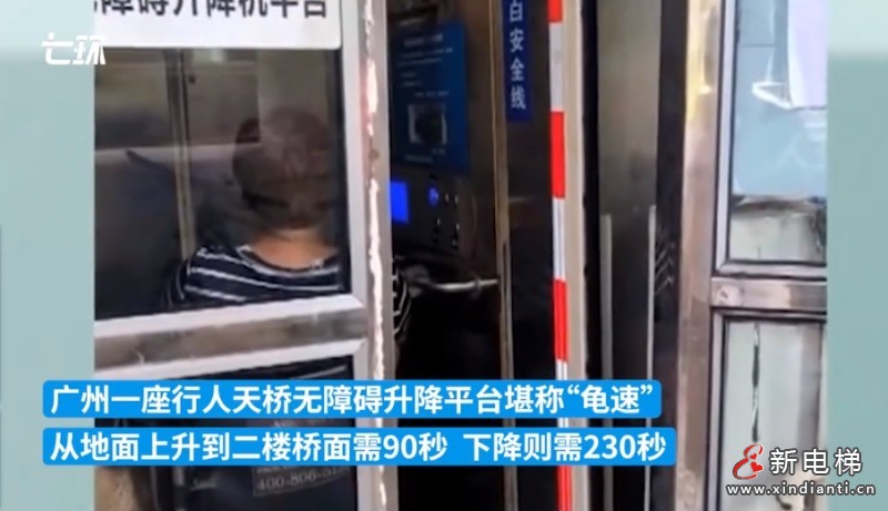 廣州一座人行天橋無障礙升降平臺堪稱“龜速”,從地面上升到二樓橋面需90秒,下降則需230秒。有老人吐槽,老人們乘坐前還要”罰站“等待,效率太低。該平臺頻發(fā)故障,運(yùn)行伴有雜音。近日,管養(yǎng)單位表示,將于7月底進(jìn)行新一輪的維修。