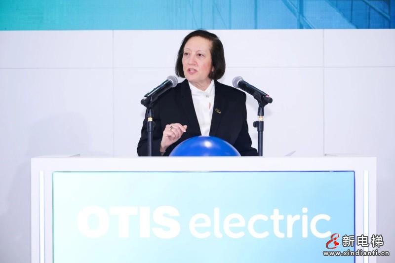 奧的斯全球主席、首席執(zhí)行官兼總裁朱蒂在新品發(fā)布會(huì)上致辭