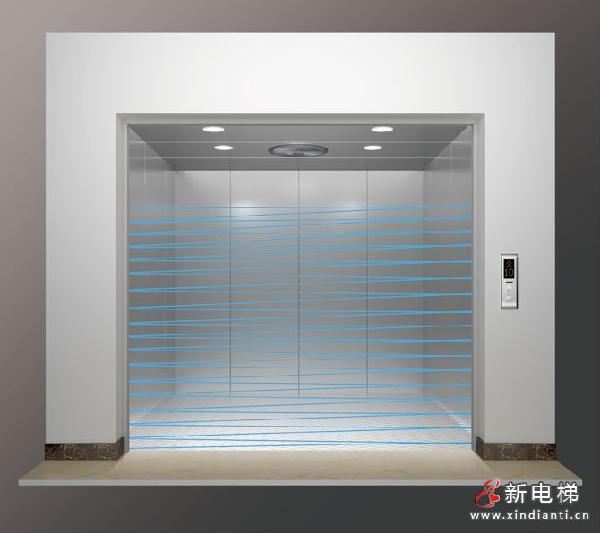 門光幕保護(hù)技術(shù),標(biāo)配154束紅外光幕保護(hù),當(dāng)其中任何一束光線被阻擋時控制系統(tǒng)立即輸出開門信號,轎門立即停止關(guān)閉并打開,避免電梯關(guān)門與貨物碰撞。