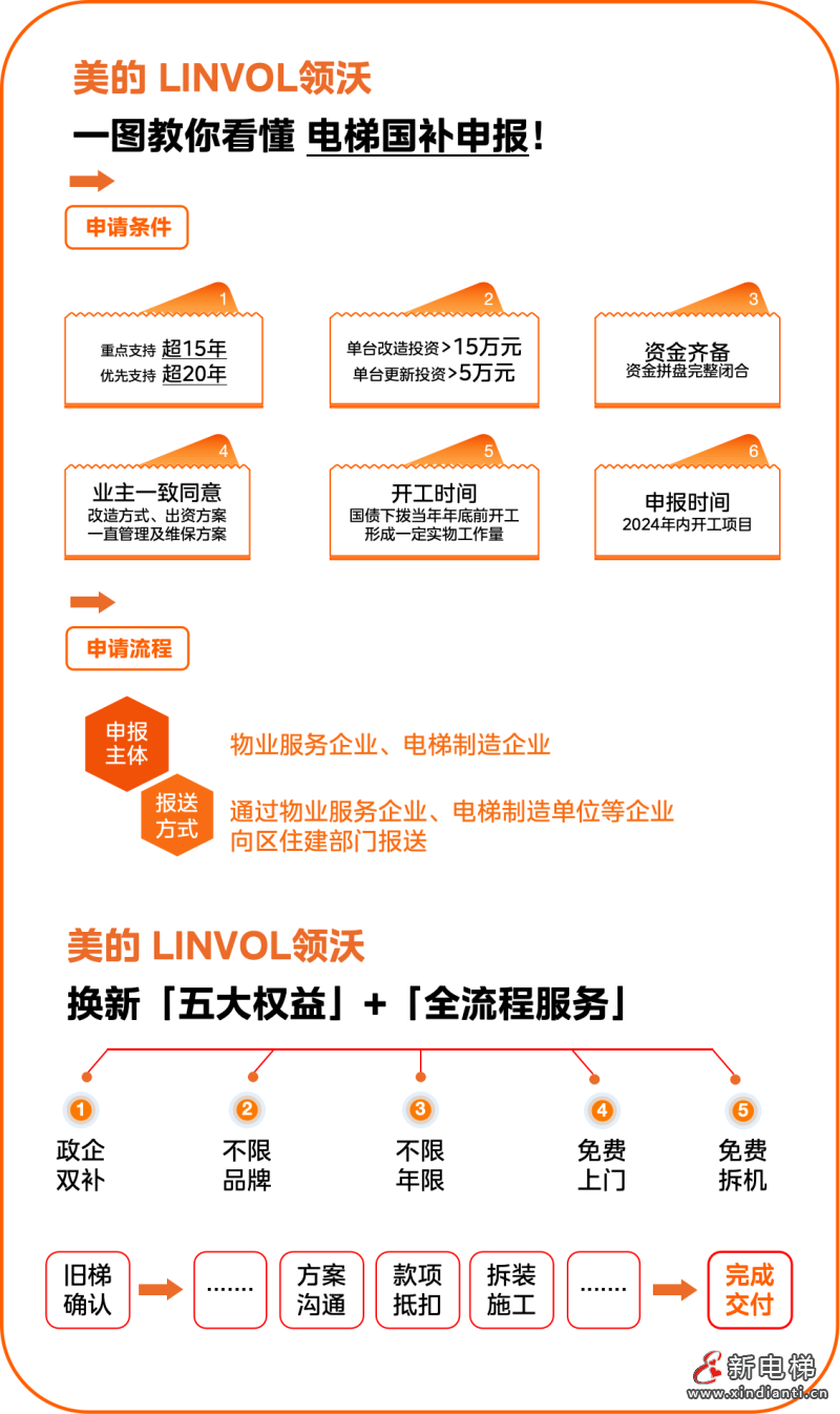 為響應“雙新”政策,支持城市更新,美的集團投入80億元資金支持包括電梯在內(nèi)的換新行動,美的LINVOL領沃電梯推出政企雙補等“煥新五大權益”,為居民解決老舊電梯困擾。