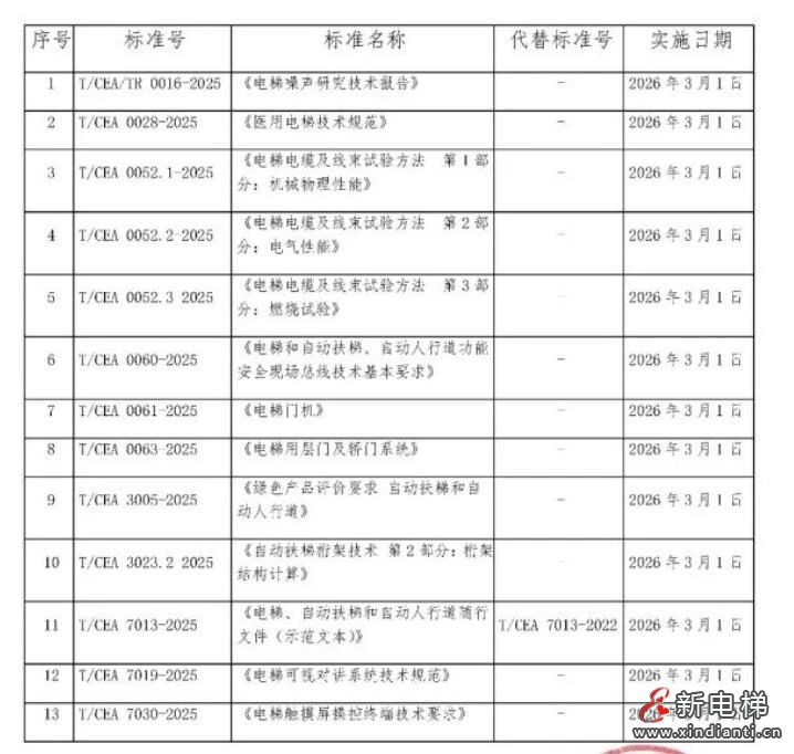根據(jù)《中國(guó)電梯協(xié)會(huì)標(biāo)準(zhǔn)工作委員會(huì)工作細(xì)則》的規(guī)定,電梯協(xié)會(huì)批準(zhǔn)發(fā)布《電梯噪聲研究技術(shù)報(bào)告》等13 項(xiàng)團(tuán)體標(biāo)準(zhǔn)。