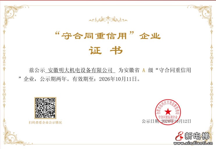核心提示:新電梯網(wǎng)絡(luò)2024-2025年度全國電梯安裝維保模范企業(yè)獎參評企業(yè)安徽明大機(jī)電設(shè)備有限公司風(fēng)采展示安徽明大機(jī)電設(shè)備有限公司