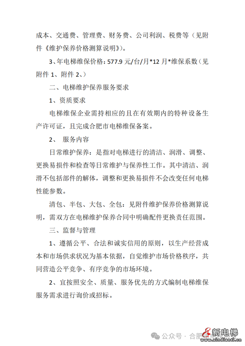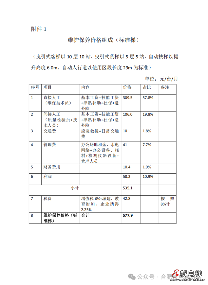 合肥市電梯行業(yè)協(xié)會(huì)發(fā)布《關(guān)于公布合肥市電梯維保平均成本價(jià)格的通告》,成本價(jià)格,以供電梯維護(hù)保養(yǎng)單位、電梯使用單位在協(xié)商確定電梯維護(hù)保養(yǎng)價(jià)格時(shí)參考。電梯維護(hù)保養(yǎng)服務(wù)成本與價(jià)格: