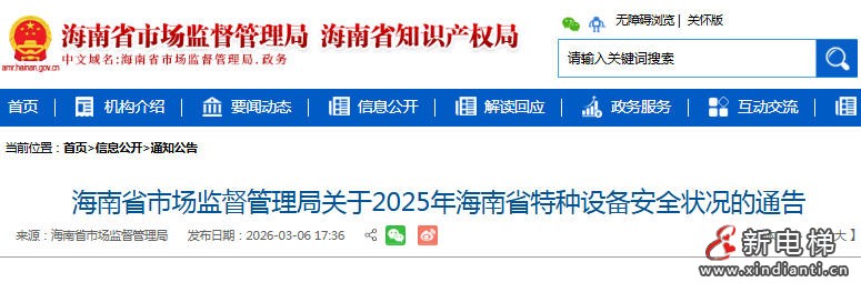 ‌‌‌海南省發(fā)布2025年全省特種設(shè)備安全狀況通告 在用電梯12.07萬臺