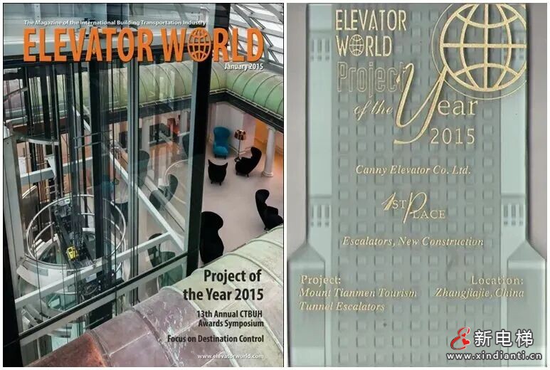 康力電梯-張家界天門山觀光隧道天梯,被行業(yè)專家譽(yù)為“創(chuàng)造6個(gè)世界之最”,并獲得“Elevator World電梯世界2015年度工程獎-新安裝自動扶梯一等獎”,是中國電梯品牌首度獲此殊榮。
