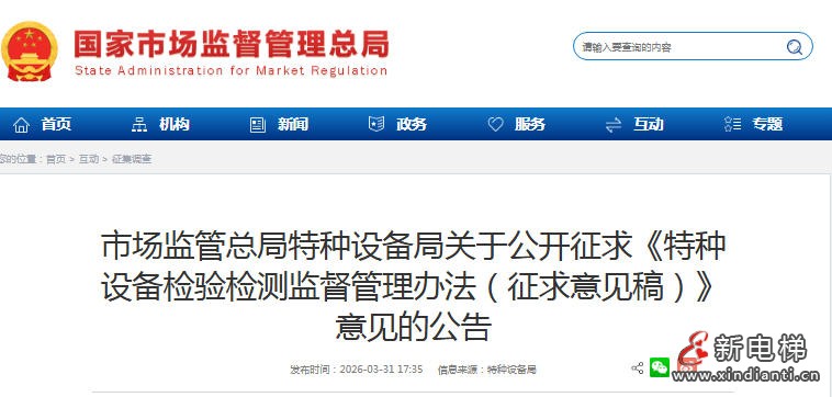 為進(jìn)一步加強對特種設(shè)備檢驗檢測工作的監(jiān)督管理,市場監(jiān)管總局特種設(shè)備局起草了《特種設(shè)備檢驗檢測監(jiān)督管理辦法(征求意見稿)》,現(xiàn)向社會公開征求意見。公眾可通過以下途徑和方式提出意見: