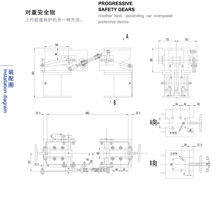 滾輪導(dǎo)靴|緩沖器|漸進式安全鉗|瞬時式安全鉗|轎廂意外移動保護|電磁夾軌器|提拉機構(gòu)