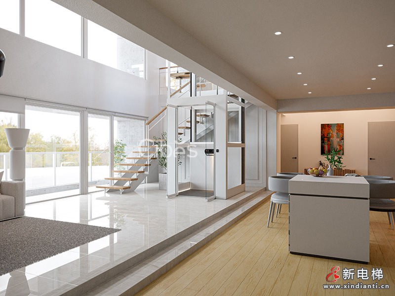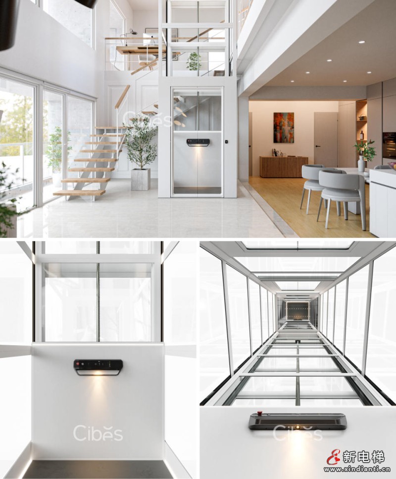 自帶一體化井道,標配為三面觀光,可選五面觀光井道,更通透,更明亮。 平臺內控制面板標配白色,標配??背景,讓電梯設計回歸簡約生活。