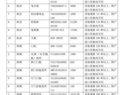 近日,杭州市質(zhì)監(jiān)局委托下城區(qū)質(zhì)量技術(shù)協(xié)會(huì)對(duì)杭州市面上流通較廣泛的主流電梯零部件及維修工時(shí)費(fèi)進(jìn)行了價(jià)格調(diào)研,并根據(jù)電梯制造企業(yè)分類(lèi)統(tǒng)計(jì),匯總成冊(cè),出...[詳情]