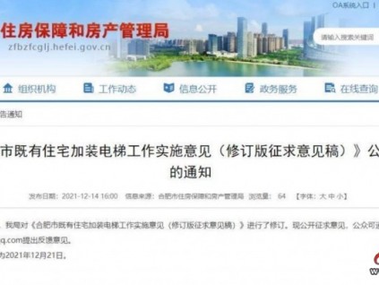 12月14日合肥市住房保障和房產(chǎn)管理局制定《合肥市既有住宅加裝電梯工作實(shí)施意見》(修訂版征求意見稿),現(xiàn)公開向社會征求意見。5年內(nèi)未列入棚戶區(qū)等改造計(jì)劃...[詳情]