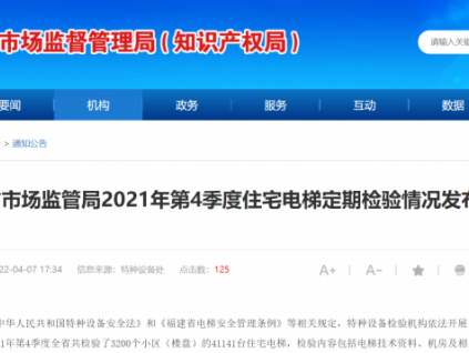 福建省市場(chǎng)監(jiān)管局發(fā)布《2021年第4季度住宅電梯定期檢驗(yàn)不合格住宅電梯清單》,華升富士達(dá)電梯有限公司福建分公司、迅達(dá)(中國(guó))電梯有限公司福州分公司等維保...[詳情]