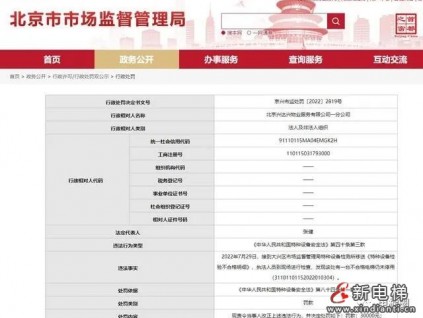 2022年7月29日,北京市市場監(jiān)督管理局大興區(qū)市場監(jiān)督管理局特種設備檢測所日前,對北京興達興物業(yè)服務有限公司一分公司處罰3萬元。處罰決定書顯示,執(zhí)法人員...[詳情]