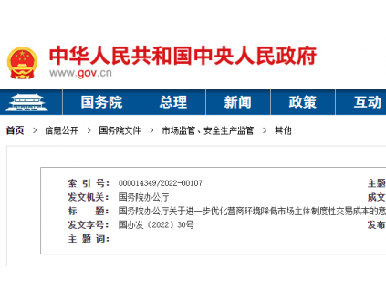 國務院辦公廳9月7日印發(fā)《關于進一步優(yōu)化營商環(huán)境降低市場主體制度性交易成本的意見》。