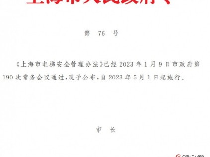 《上海市電梯安全管理辦法》已經(jīng)2023年1月9日市政府第190次常務(wù)會議通過,現(xiàn)予公布,自2023年5月1日起施行。
