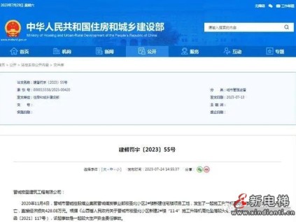 7月24日,中華人民共和國住房和城鄉(xiāng)建設部網(wǎng)站發(fā)布“建督罰字〔2023〕55號”,對晉城宏圣建筑工程有限公司發(fā)生的3人死亡、未及時上報事故情況、較大生產(chǎn)安全...[詳情]