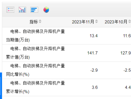 國家統(tǒng)計局:11月電扶梯及升降機產(chǎn)量13.4萬臺!1-11月累計產(chǎn)量141.7萬臺,增長3.6%