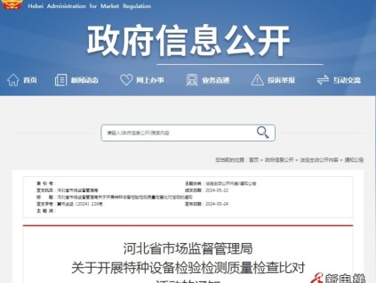 河北省市場監(jiān)督管理局關(guān)于開展特種設(shè)備檢驗檢測質(zhì)量檢查比對活動的通知[詳情]