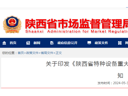 陜西省特種設(shè)備安全生產(chǎn)專業(yè)委員會關(guān)于印發(fā)《陜西省特種設(shè)備重大事故隱患判定標(biāo)準(zhǔn)》的通知[詳情]