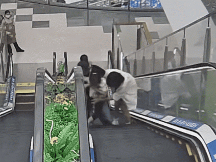 6月1日江西贛州于都縣一廣場小孩腳被卡扶梯內(nèi)側(cè)